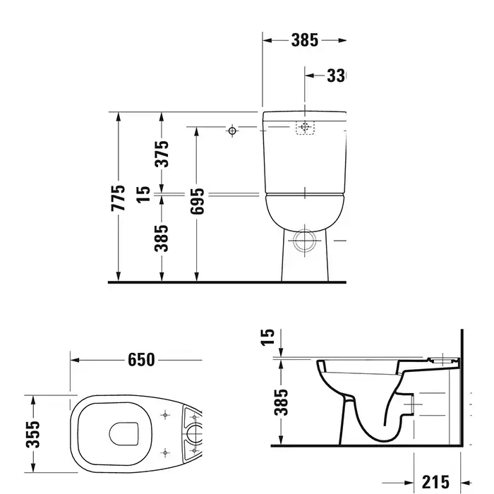 Duravit D-Code Унитаз моноблок 65х35см., слив универсальный, цвет: белый