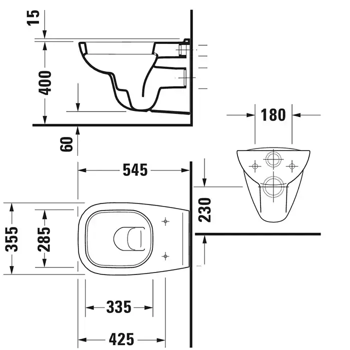 Duravit D-Code Унитаз подвесной, с вертикальным смывом объем: 4,5 л, 35х54см., цвет: белый