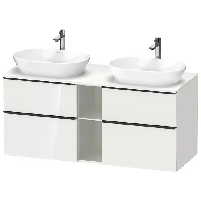 Duravit D-Neo Тумбочка подвесная 64.4x140x55 см, 2 раковины, 2 ящика, цвет: белый высокоглянцевый