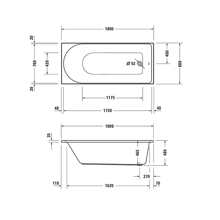 Duravit D-Neo Ванна 180х80хh60см, встраиваемая, с одним наклоном для спины, акрил, цвет: белый