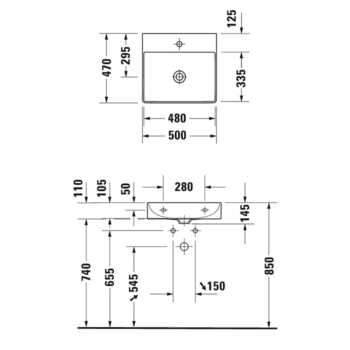 Duravit DuraSquare Раковина подвесная 50х47см, без перелива, с 1 отв., цвет: белый