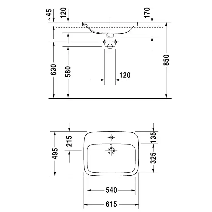 Duravit DuraStyle Раковина подвесная, 61х49см., с 1 отв., встраиваемая сверху, цвет: белый