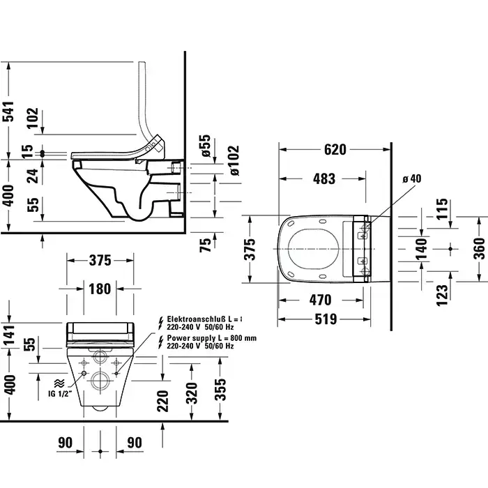 Duravit DuraStyle Унитаз подвесной 62х37см., для крышки-биде Sensowash, с креплением, цвет: белый