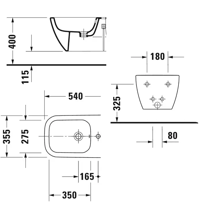 Duravit Happy D.2 Биде подвесное с 1 отв под смеситель, с креплением, цвет: белый