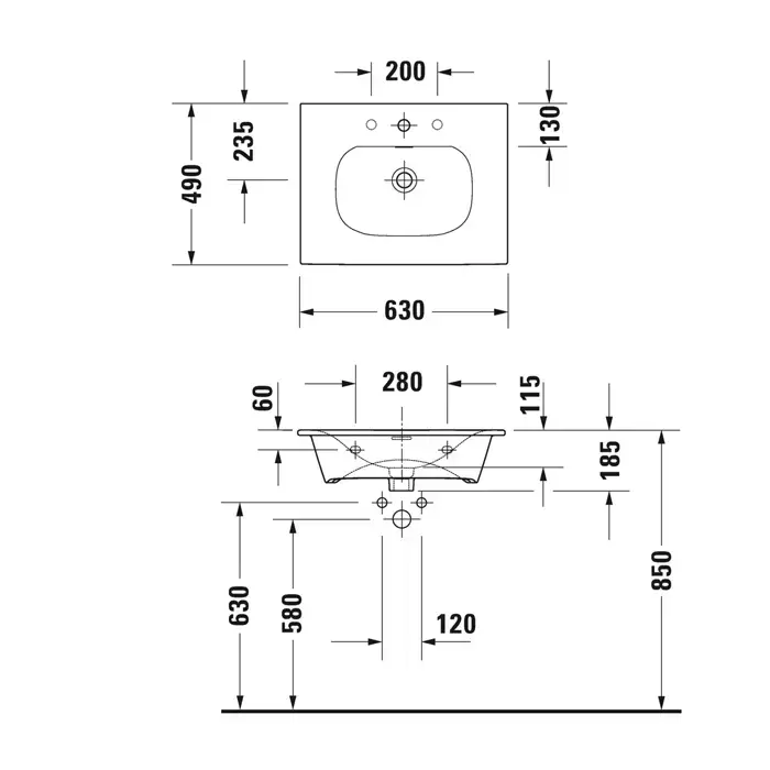 Duravit Happy D.2 Plus Раковина подвесная, 63х49см., с 2 отв., выпуск с керамической крышкой, WonderGliss, с переливом, цвет: белый