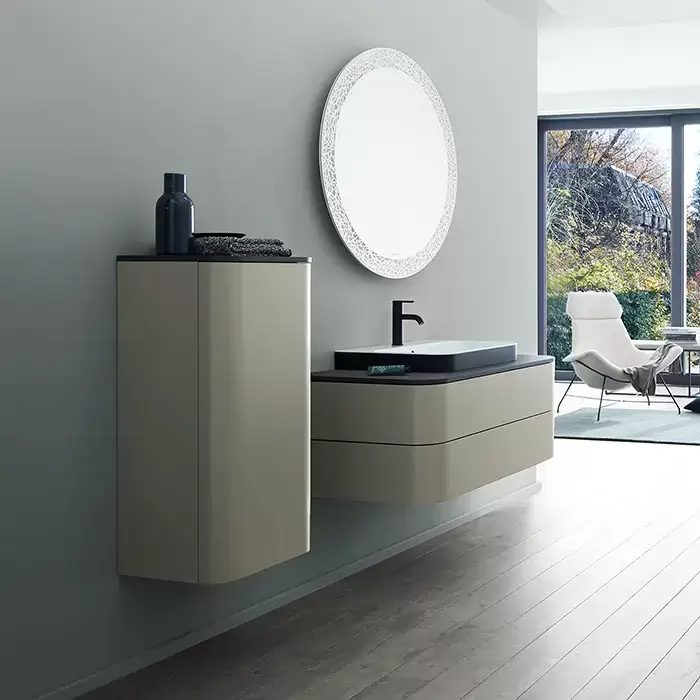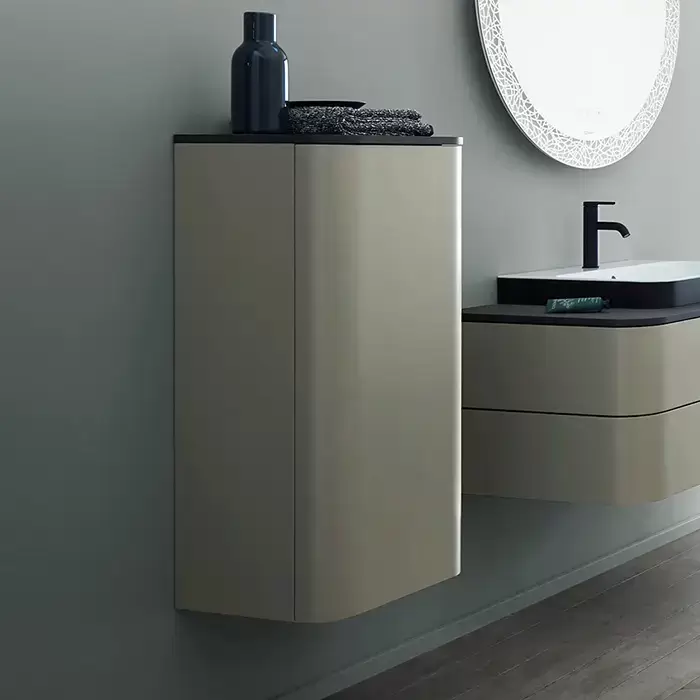 Duravit Happy D.2 Plus Шкаф подвесной 88x40x36см., с 2 стеклянными полками, 1 дверь, петли слева, цвет: stone grey satin matt/brushed walnut