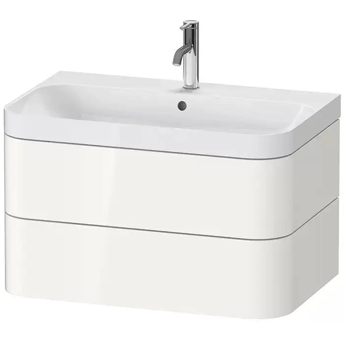Duravit Happy D.2 Plus Тумба подвесная c-shaped с умывальником 77.5х49х46.8см, с 1 отв под смесит, 2 ящика, выпуск и сифон в комплекте, цвет: белый глянцевый