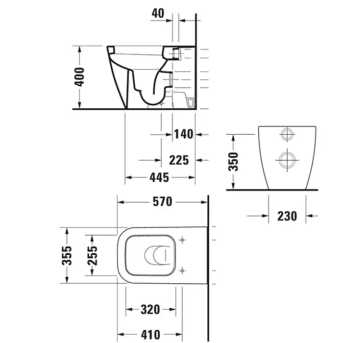 Duravit Happy D.2 Унитаз напольный пристенный вариант, для независимого подключения воды, с вертикальным смывом, цвет: белый