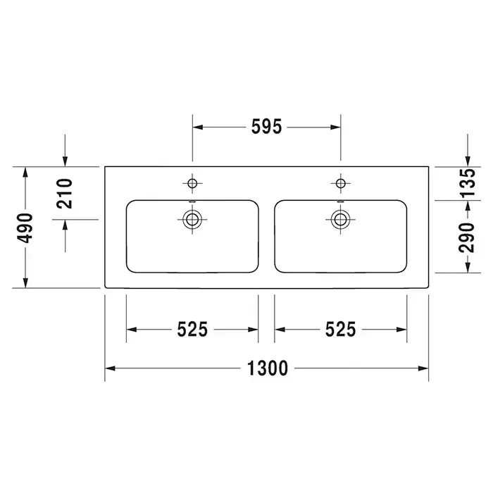 Duravit ME by Starck Двойная раковина 130x49см, встраиваемая сверху, без отв., цвет: белый