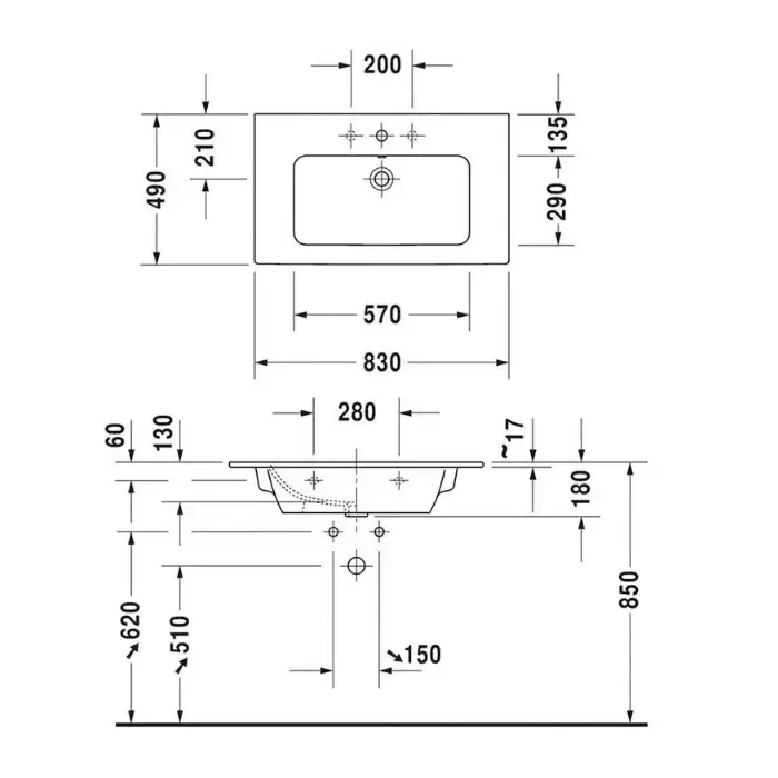 Duravit Me by Starck Раковина 83х49см., 1 отв., подвесная/накладная, цвет: белый