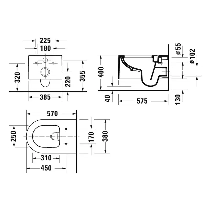 Duravit Millio Унитаз подвесной, 37х57см., декор "Smooth", крепление в компл., цвет: аквамарин матовый