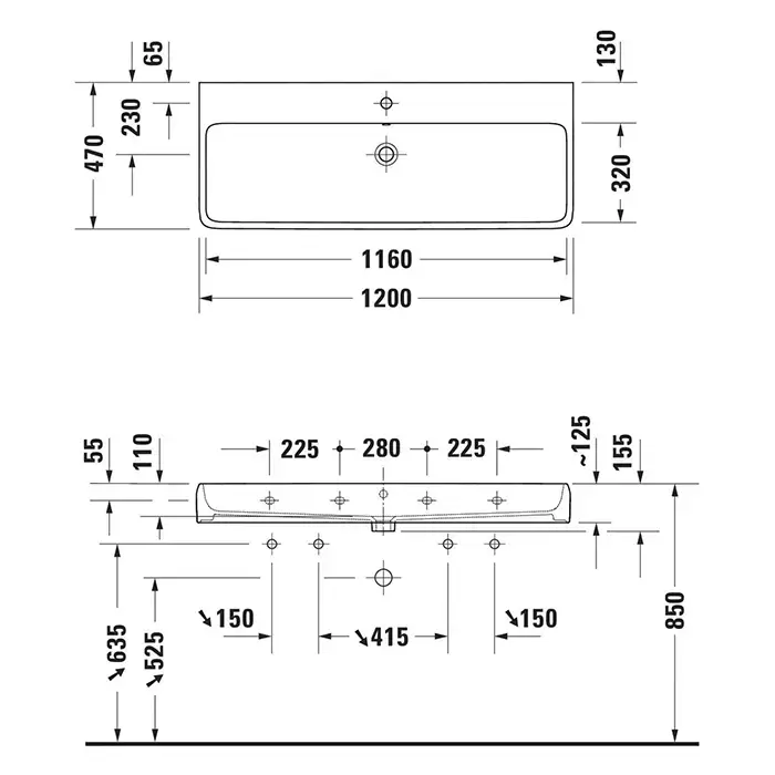 Duravit Qatego Раковина 120х47х12.5см., накладная/подвесная, 1 отв., цвет: белый