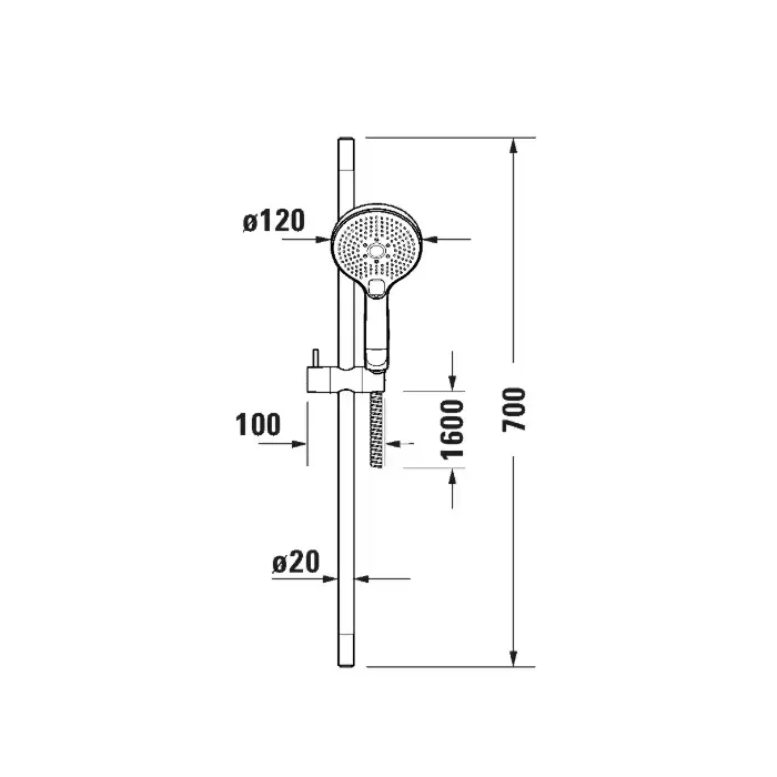 Duravit Shower Душевая система: штанга 70см., шланг 160см и ручной душ Ø12см., 3 режима, цвет: хром