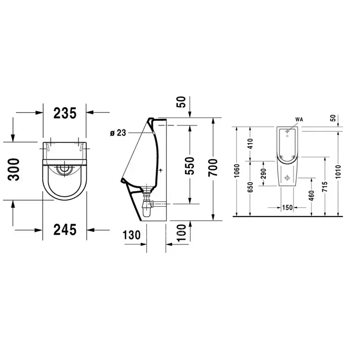 Duravit Starck 3 Писсуар подвесной 30х24.5см., безободковый, без "мушки", подвод воды сзади, с креплением, цвет: белый