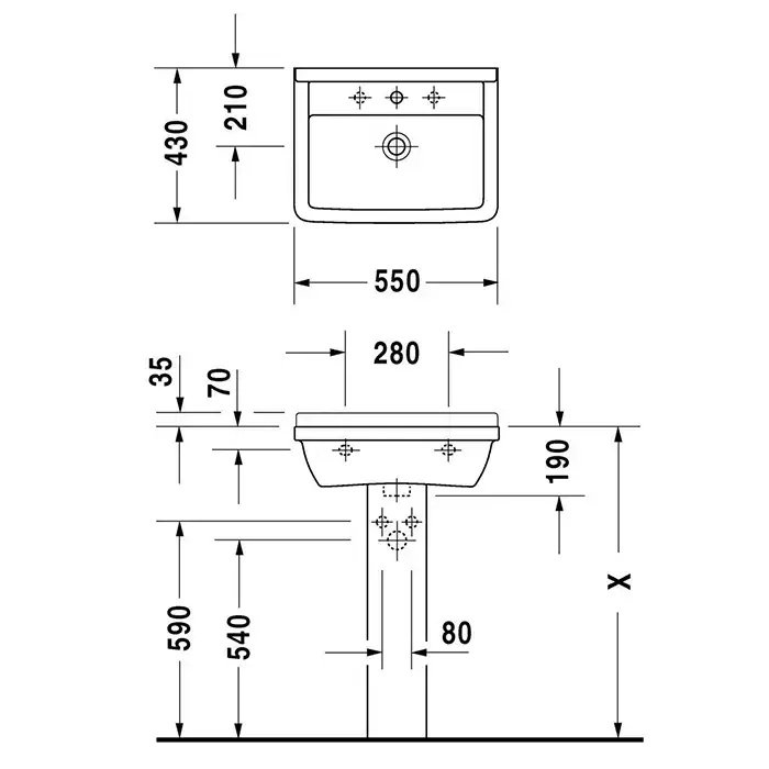 Duravit Starck III Раковина подвесная 55х43см. с переливом, с 1 отв под смеситель, цвет: белый