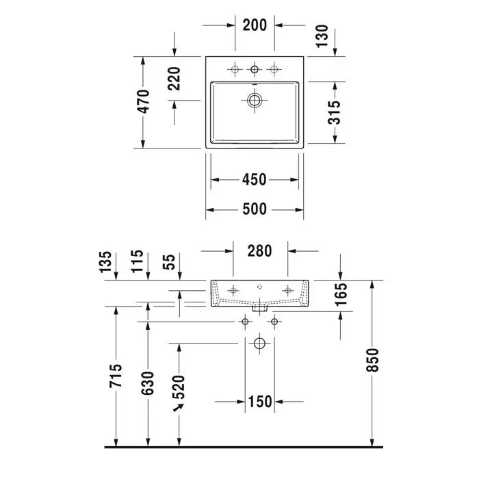 Duravit Vero Air Раковина 50х47см., подвесная, без отв., шлифованная, без перелива, цвет: белый