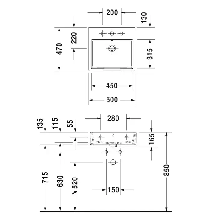 Duravit Vero Air Раковина 50х47см., подвесная, без отв., шлифованная, с переливом, цвет: белый