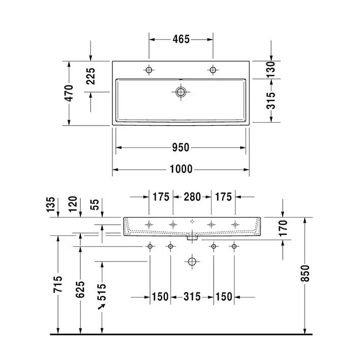 Duravit Vero Air Раковина подвесная, 100х47см, с 2 отв., без перелива, шлифованная, цвет: белый