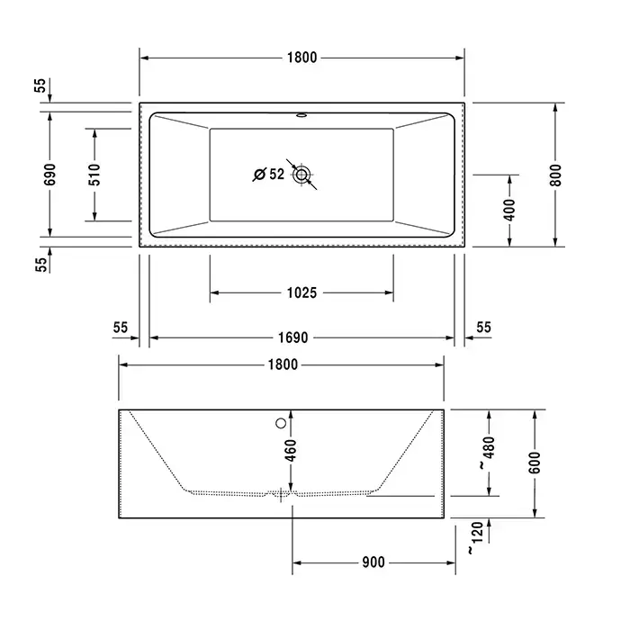 Duravit Vero Air Ванна 180x80см, встраиваемая, Vorwand, цвет: белый