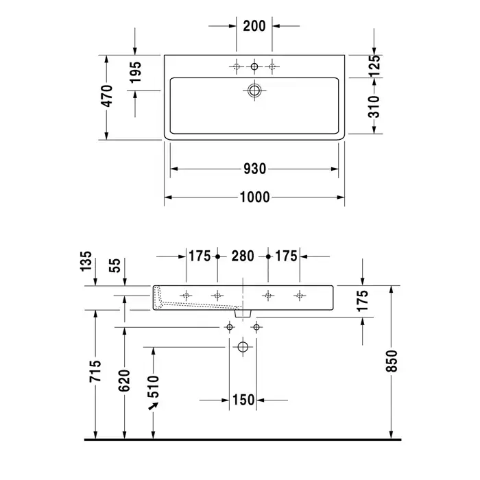 Duravit Vero Раковина подвесная 100x47см., с 1 отв., с переливом, цвет: белый
