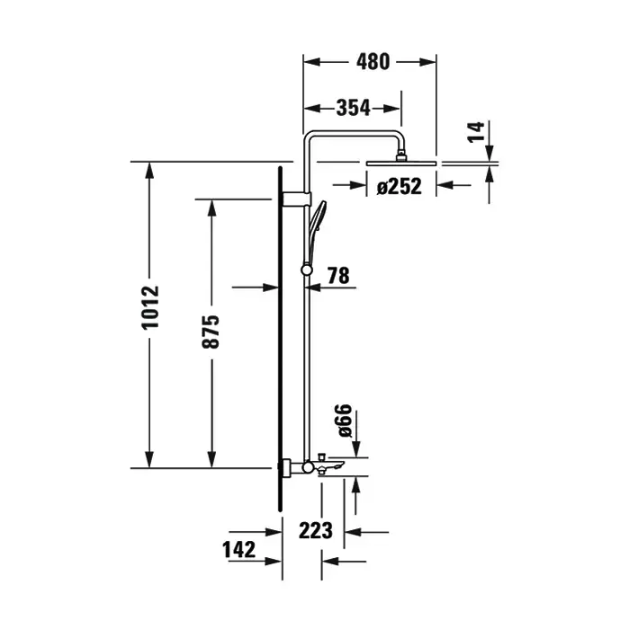 Duravit Wave Душевая система с термостатом, ручной душ с регулировкой высоты, шланг 1600 мм, ручной душ 3 режима, излив 223 мм, цвет: черный матовый