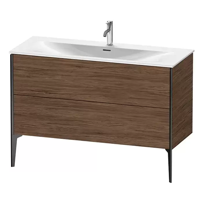 Duravit XViu Тумба подвесная 121x48x59.1см, с раковиной, 2 ящика, цвет: walnut dark/черный матовый