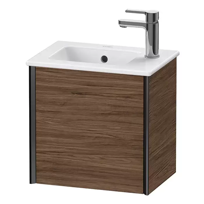 Duravit XViu Тумба подвесная 41x29x40см, с раковиной, 1 дверь, (петли слева), цвет: walnut dark/черный матовый