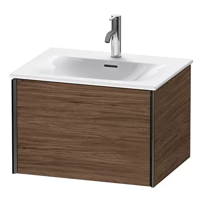 Duravit XViu Тумба подвесная 61x48x39.7см, с раковиной, 1 ящик, цвет: walnut dark/черный матовый