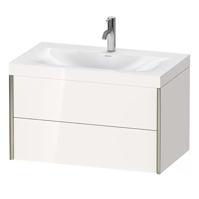 Duravit XViu Тумба подвесная 80x48x50.3см, с раковиной без перелива, с 1 отв под смес, 2 ящика, цвет: белый глянцевый/champagne matt