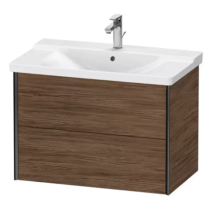 Duravit XViu Тумба подвесная 81x46.9x56.5см, с раковиной, 2 ящика, цвет: walnut dark/черный матовый