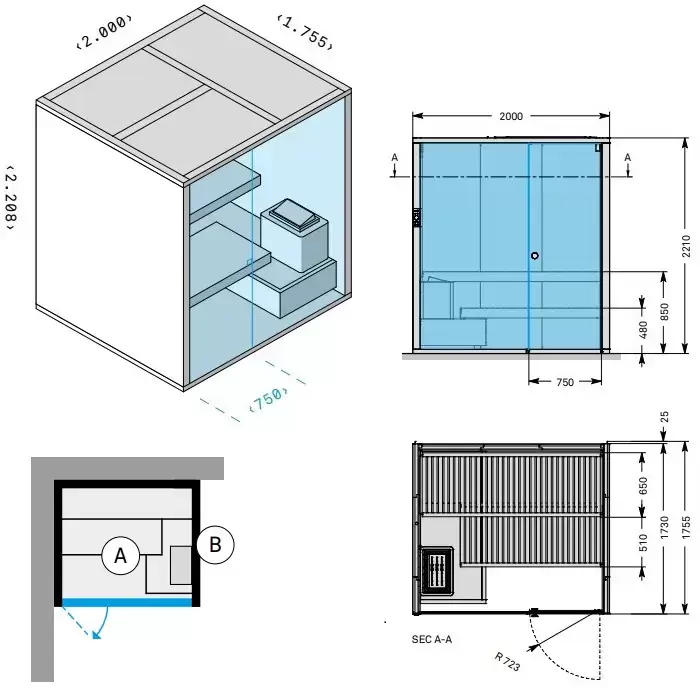 Effegibi BodyLove S Сауна 200x176x220 см, угловая SX, цвет: термообработанная древесина