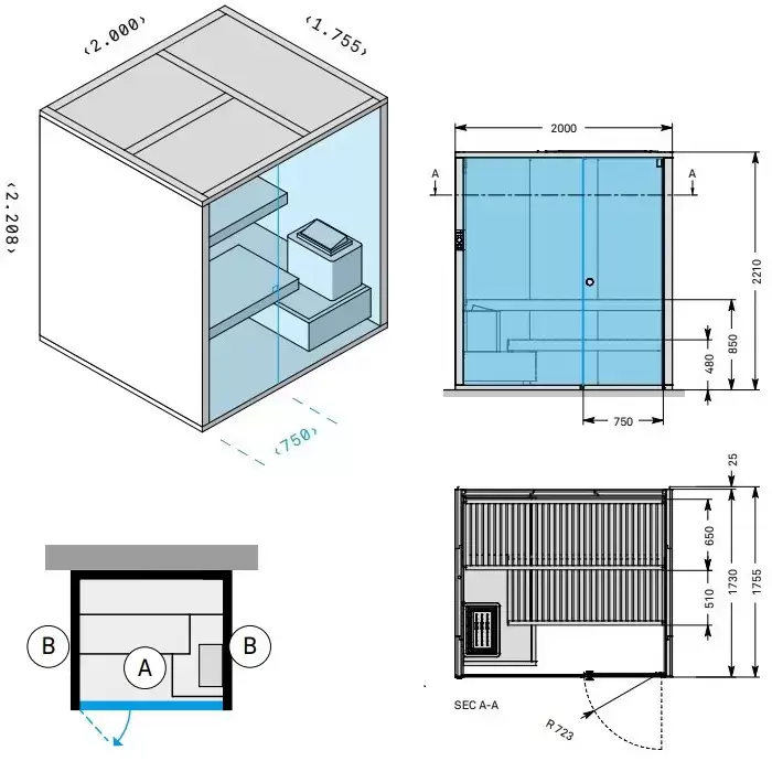 Effegibi BodyLove S Сауна 200x176x220см, пристенная, цвет: хемлок