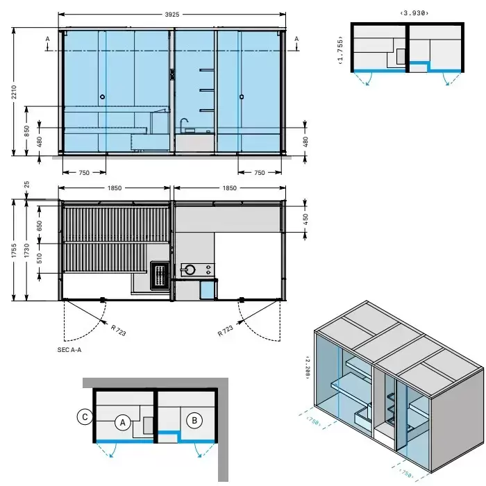 Effegibi BodyLove SH Front Сауна&Хаммам 393x176x220см, угловая DX, цвет: термообработанная древесина/трубчатое стекло