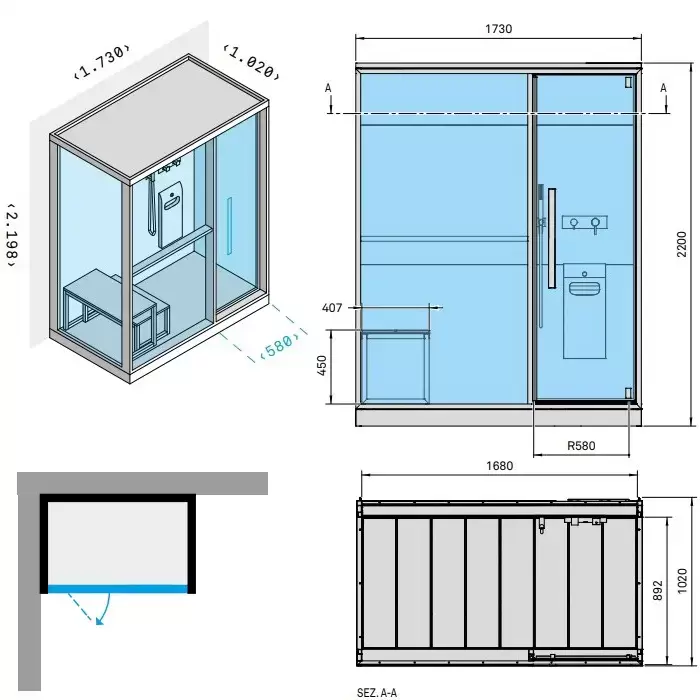 Effegibi H Large Хаммам с душем 173x102x220см, угловая SX, цвет: Soft Sand