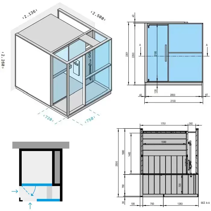 Effegibi Logica H Хаммам с душевой зоной 214x250x226см, пристенная, цвет: Soft Sand
