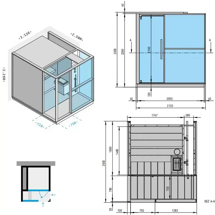 Effegibi Logica S Сауна с душем 214x250x226см, пристенная, цвет: Soft Sand