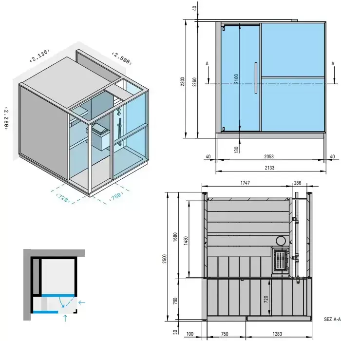 Effegibi Logica S Сауна с душем 214x250x226см, угловая SX, цвет: Soft Sand