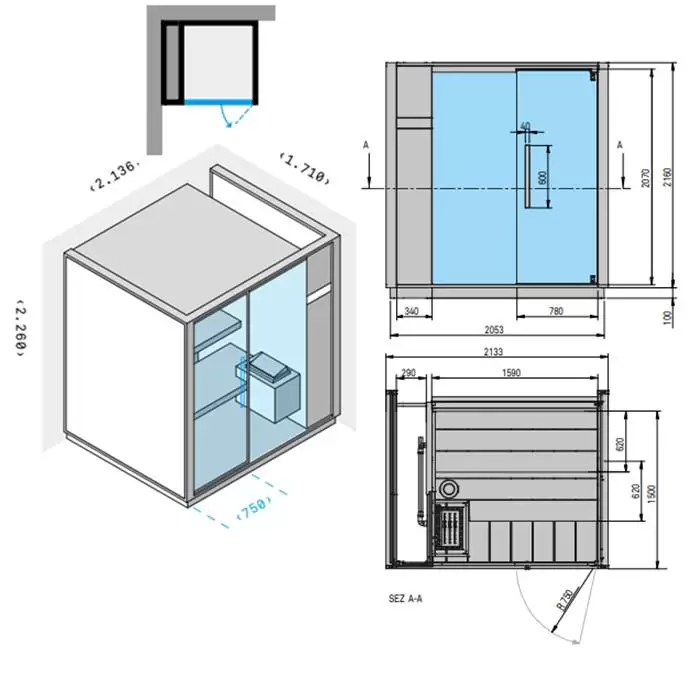 Effegibi One S Сауна 214x171x226см, уголовая SX, цвет: Soft Sand
