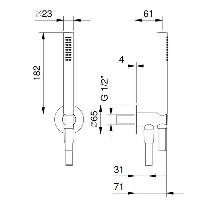 Fantini AA/27 Душевой гарнитур с настенным держателем, с подводом воды, ручным душем и шлангом 150см., цвет: матовая натуральная сталь