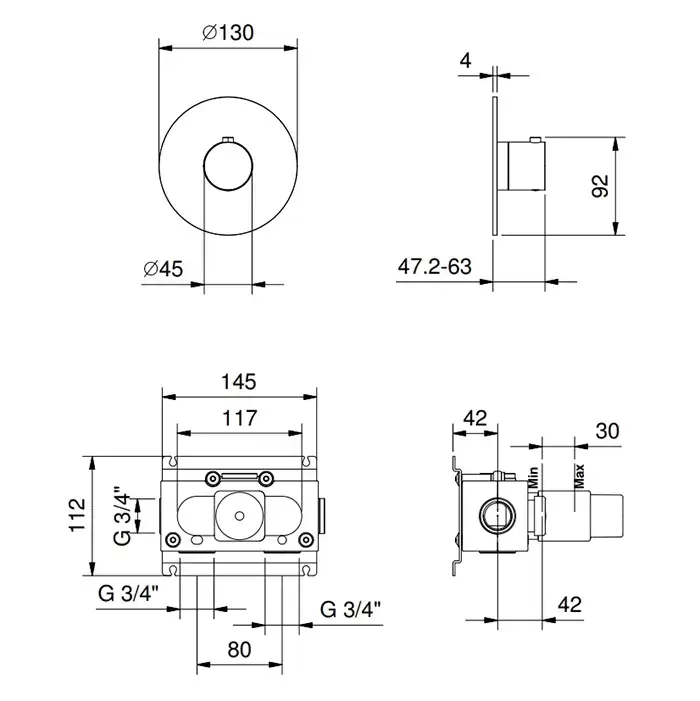 Fantini AA/27 Смеситель для душа, встраиваемый, термостатический, внешняя часть, цвет: матовая натуральная сталь