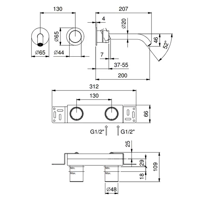Fantini AA/27 Смеситель для раковины, встраиваемый, излив: 20.7см., внешняя часть, цвет: матовая натуральная сталь
