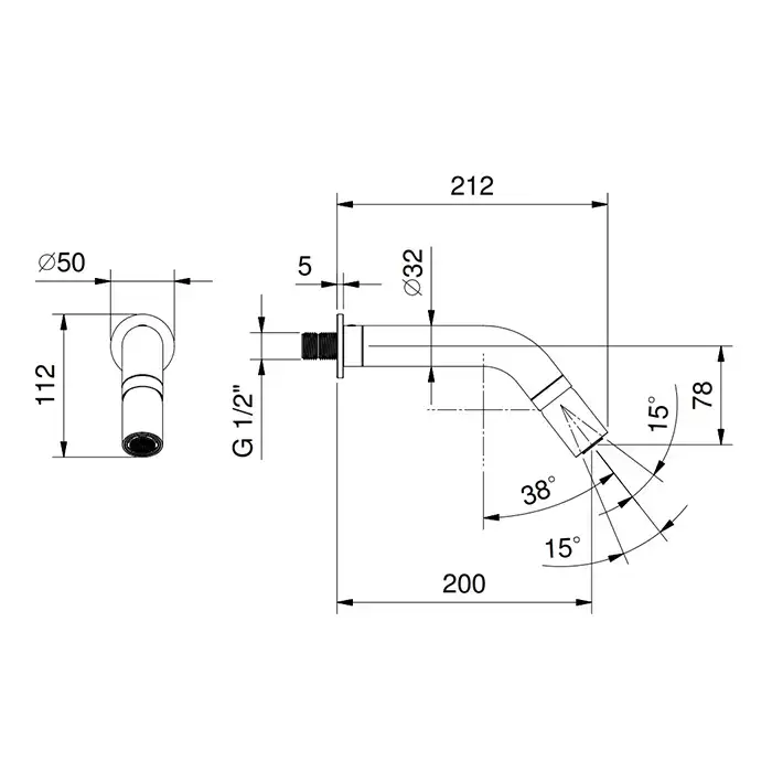 Fantini AA/27 Верхний душ Ø32мм., с настенным держателем 20см., цвет: матовая натуральная сталь