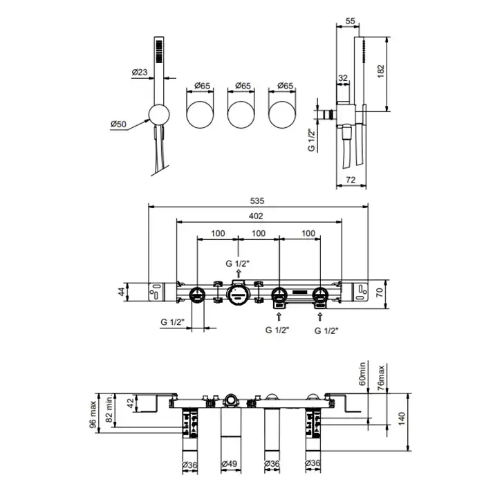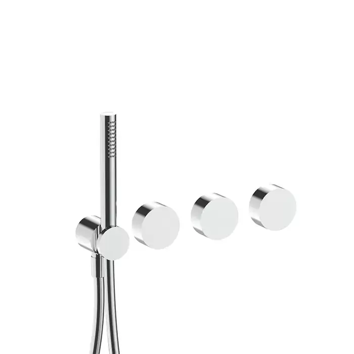 Fantini AF/21 Смеситель для ванны, на 2 потока, ручная лейка, гибкий шланг 150см., (наружная часть) цвет: Матовая натуральная сталь