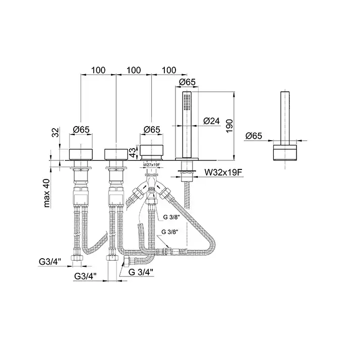 Fantini AF/21 Смеситель для ванны, набортный, 4 отв., без излива, цвет: матовая натуральная сталь