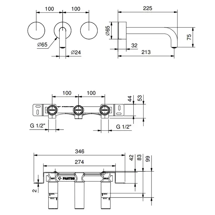 Fantini AF/21 Смеситель из стены для раковины (Наружная часть), цвет: Matt British Gold PVD