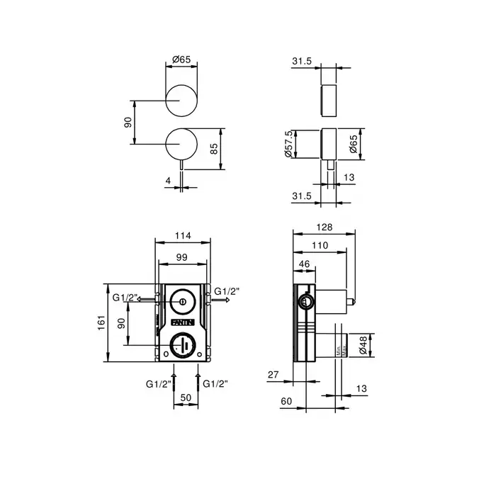 Fantini AF/21 Встраиваемый смеситель для душа на 2 потока, цвет: матовая натуральная сталь