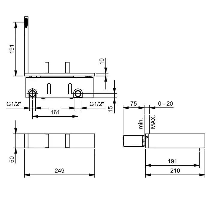 Fantini AK/25 Смеситель для раковины, настенный, излив: 191 мм, цвет: Matt Gun Metal PVD