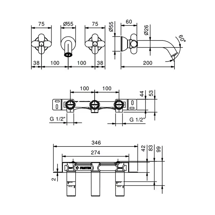 Fantini I Balocchi Смеситель для раковины, встраиваемый, излив: 20см., внешняя часть, цвет: черный матовый