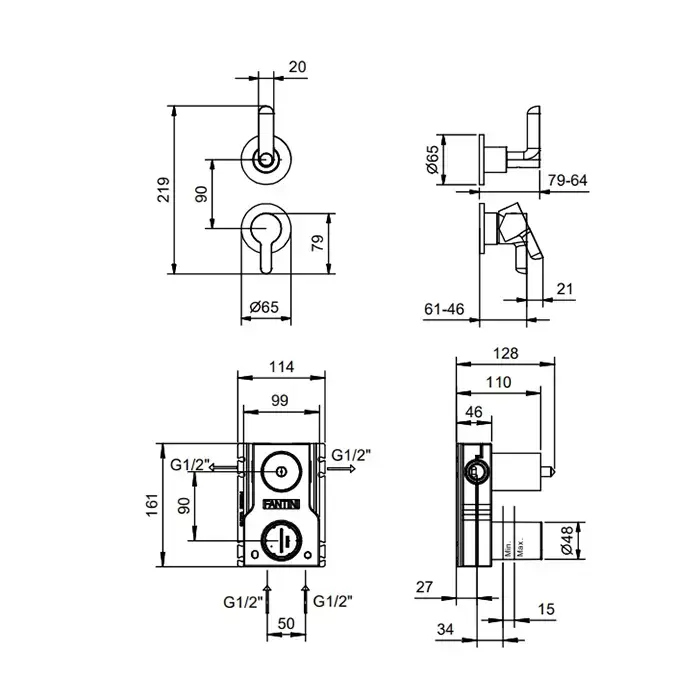 Fantini Icona Classic Смеситель для душа, встраиваемый, с переключателем на 2 потока, внешняя часть, цвет: хром