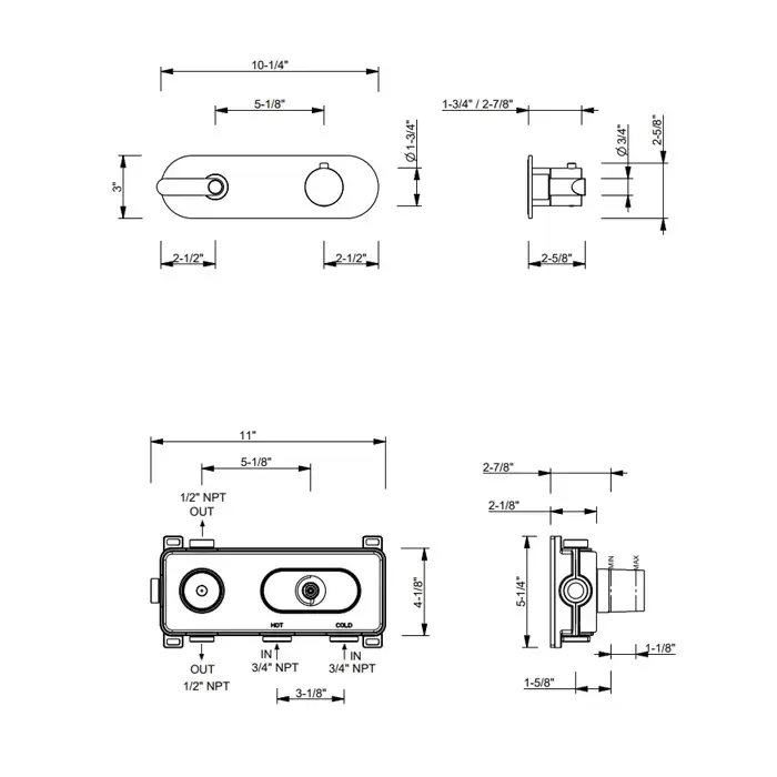 Fantini Icona Dec Смеситель настенный встраиваемый, термостатический, с переключателем на 3 положения, внешняя часть, цвет: Matt British Gold PVD